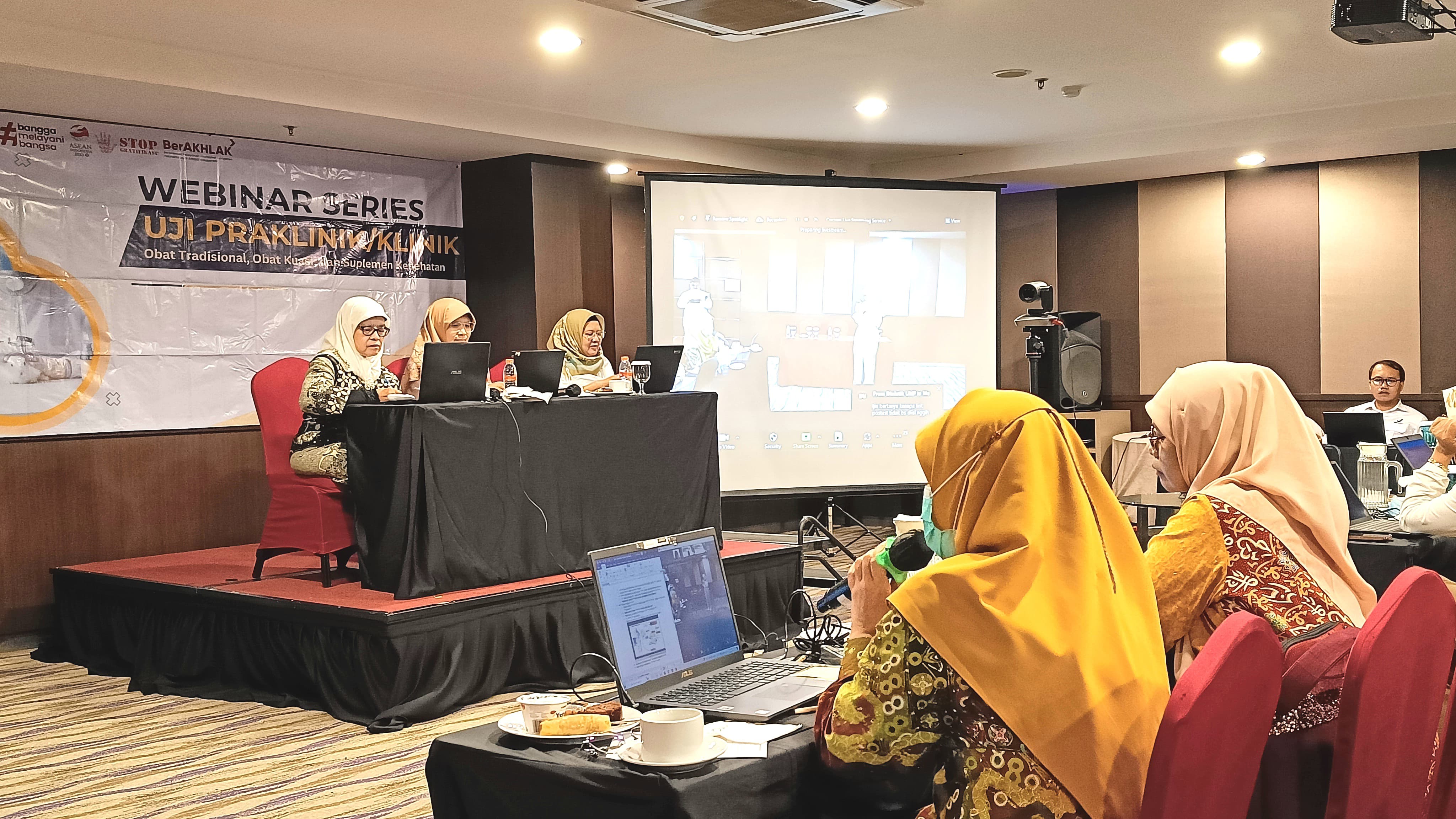 Bekasi (24/04/2024) - Sebagai bentuk dukungan Badan POM terhadap penelitian Obat Bahan Alam (OBA), Direktorat Registrasi Obat Tradisional, Suplemen Kesehatan dan Kosmetik telah menyelenggarakan Webinar Series #3 Uji Praklinik Farmakodinamik: Antihiperglikemia. Webinar ini merupakan kesinambungan dari webinar-webinar sebelumnya yang telah dimulai sejak tahun 2021 dengan beragam topik menarik yaitu pengelolaan hewan uji dalam uji praklinik, regulasi pengembangan bahan alam, uji praklinik dan standardisasi bahan alam, uji klinik, pendanaan penelitian, uji farmakodinamik antihipertensi, antidislipidemia dan pereda nyeri.